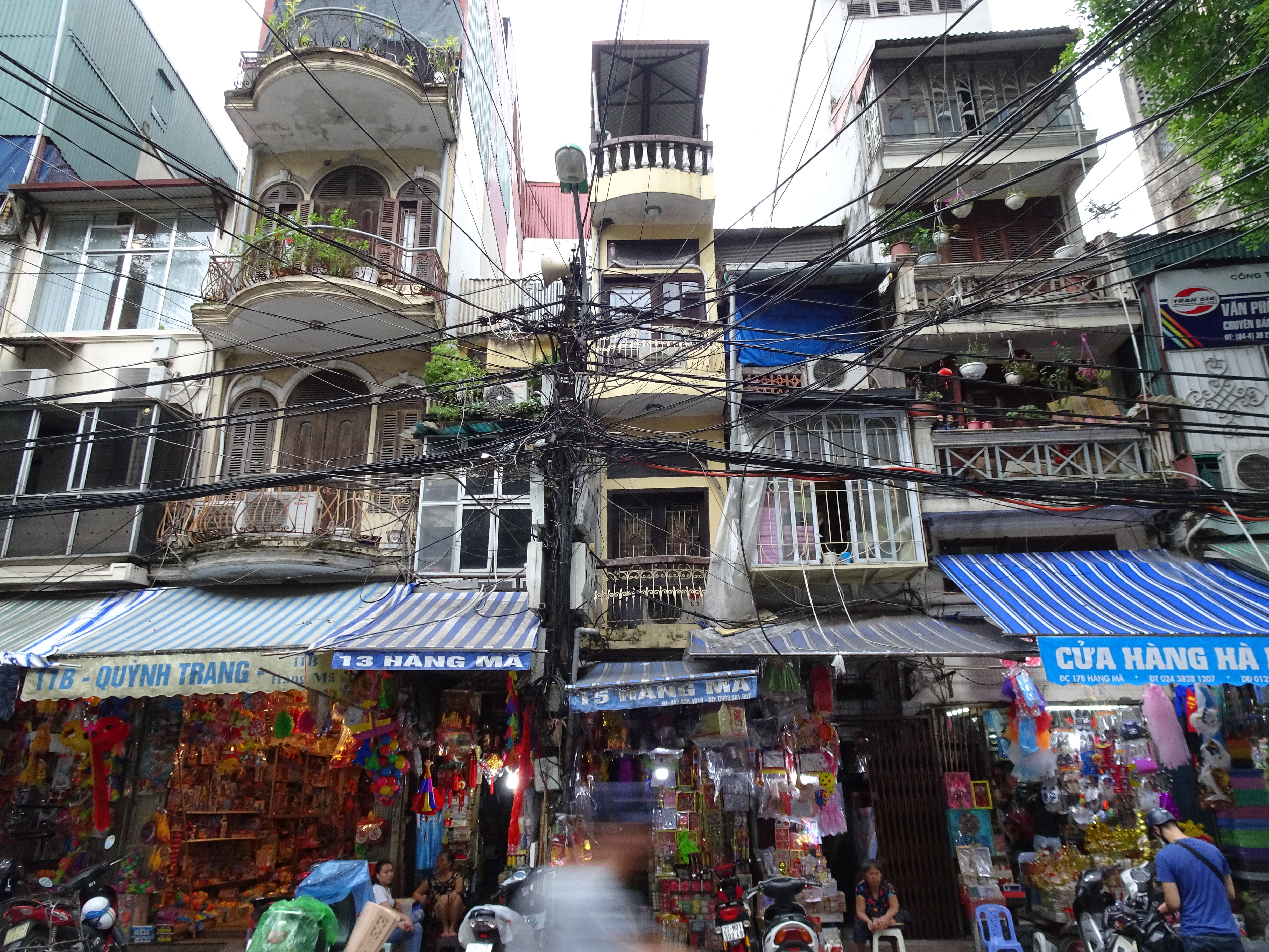 Life is lived on the streets of the Old Quarter, Hanoi.There are streets of stationery, streets of electrical items, streets of Buddha statues, streets of food. People sit on small red plastic chairs and eat food cooked in front of their shop. Rubbish is openly thrown into the road, the gutters are full of filthy water; the drains collapsing in places. Some of the smells are overwhelming.