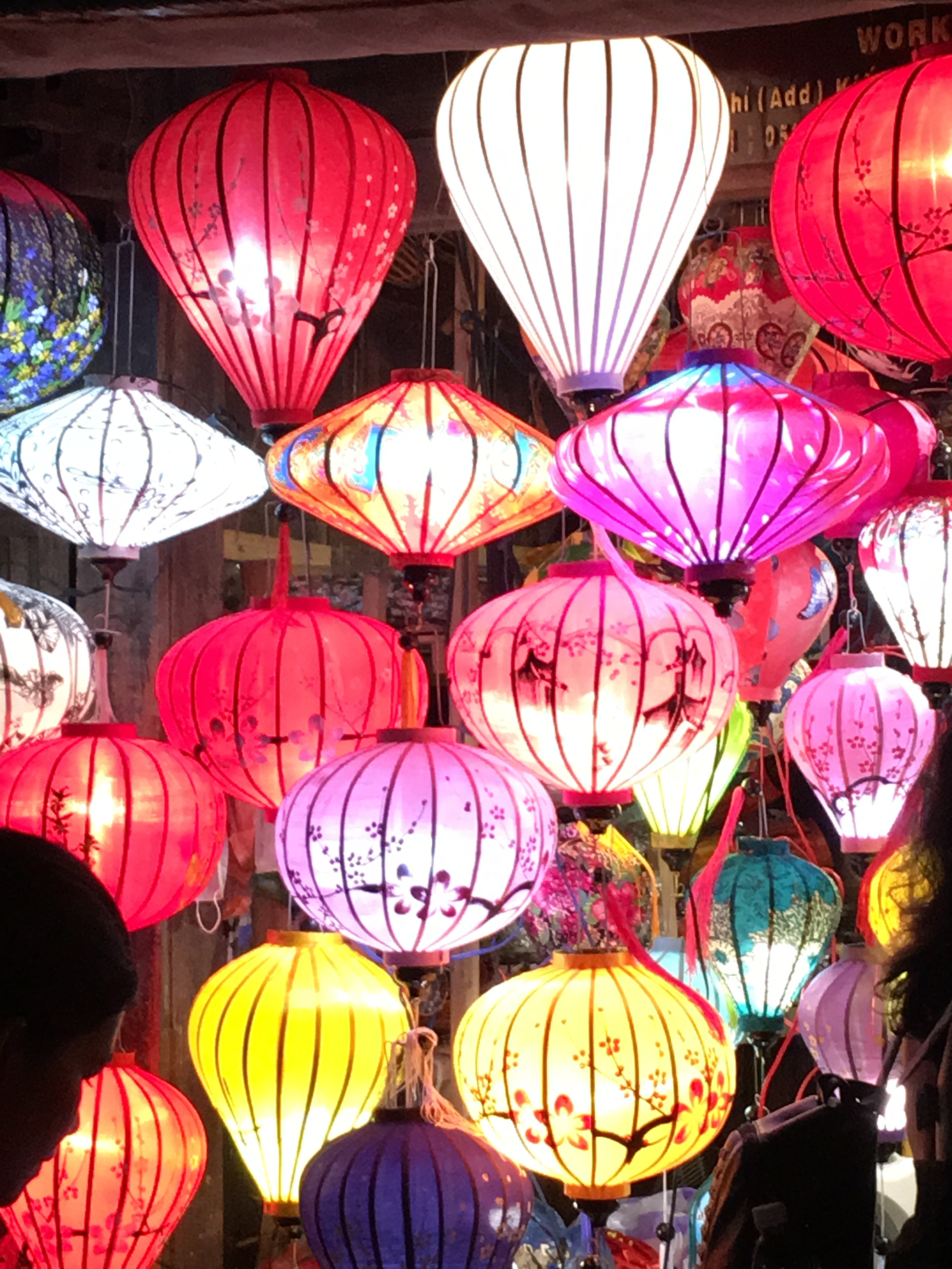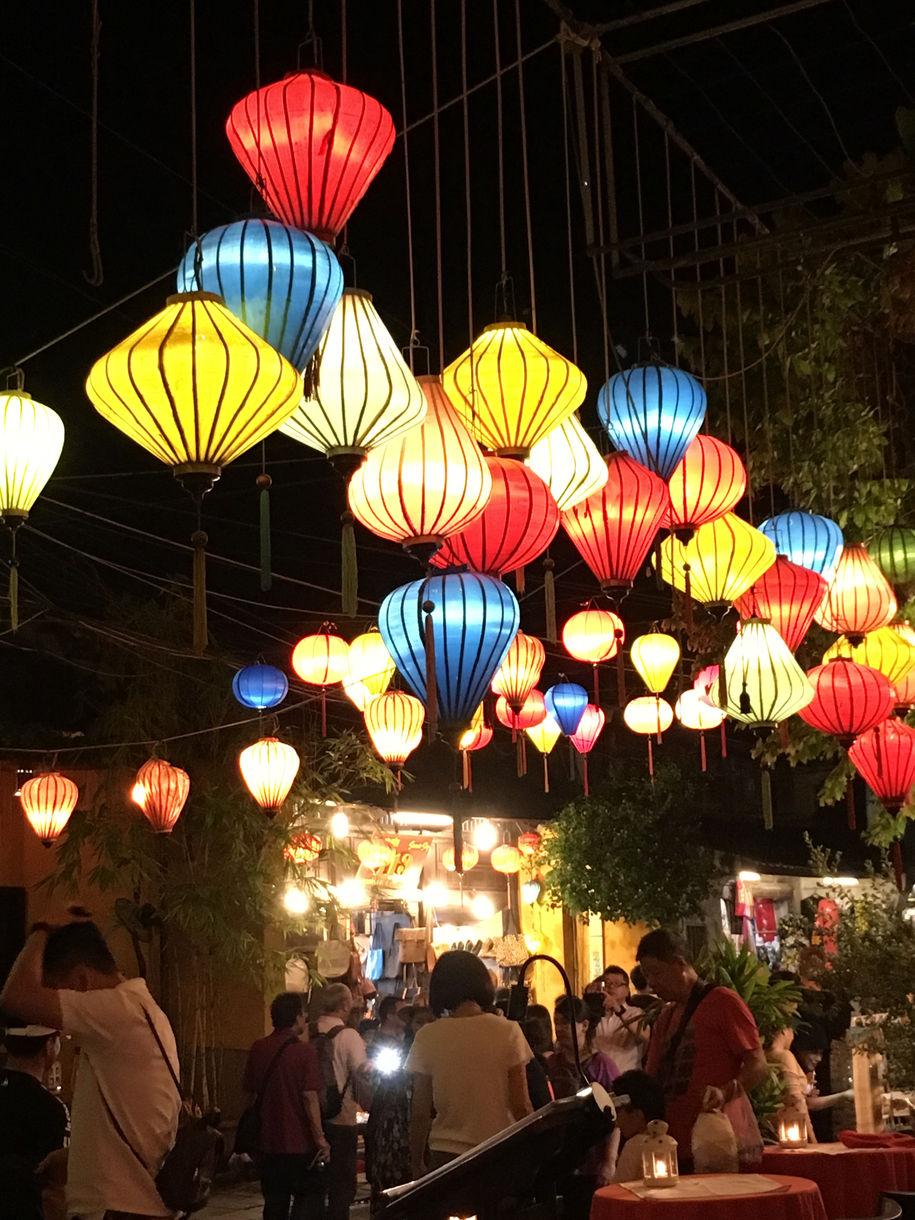 Lanterns are everywhere. Suspended on wires across the street, hung from market stalls, strung out along bridges. Decorated and patterned. Paper and material. At night they are illuminated giving the town of Hoi An an enchanted air. It is a busy place, tourists wandering around enjoying the old buildings, shops and atmosphere. We sit and people watch from a street side bar. From our small rowing boat, we float a lighted lantern and watch it drift away on the darkening river.